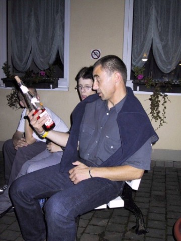 Nach getaner Arbeit gönnte er sich dann auch mal eine Fläschchen Wein. Prost und vielen Dank, Roland, für Deine Mithilfe! |