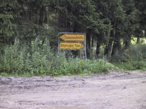 Hinter Nördlingen verliessen wir die festen Straßen um uns durch den Wald nach Möhren durchzuschlagen. Wie Ihr sehen könnte, waren die Straßen aber für den öffentlichen Verkehr zugelassen. Da trifft man dann mitten im Wald (und Schlamm) auf echte Straßenschilder.